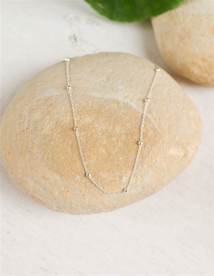 De cadena finita con 14 mini bolitas de 1mm intercaladas entre ellas por 2,5cm.