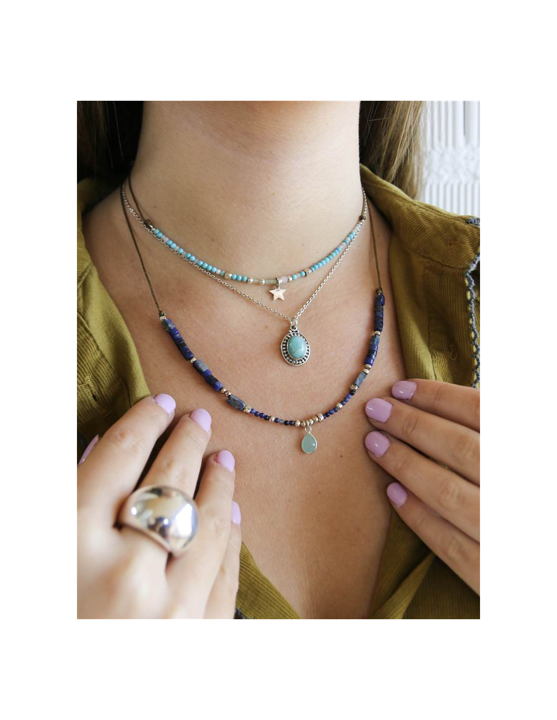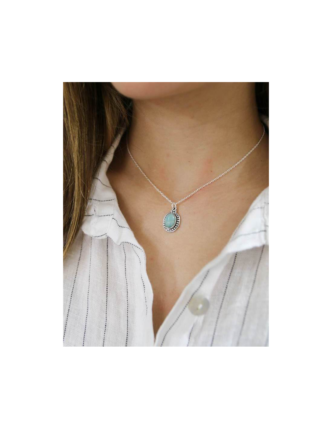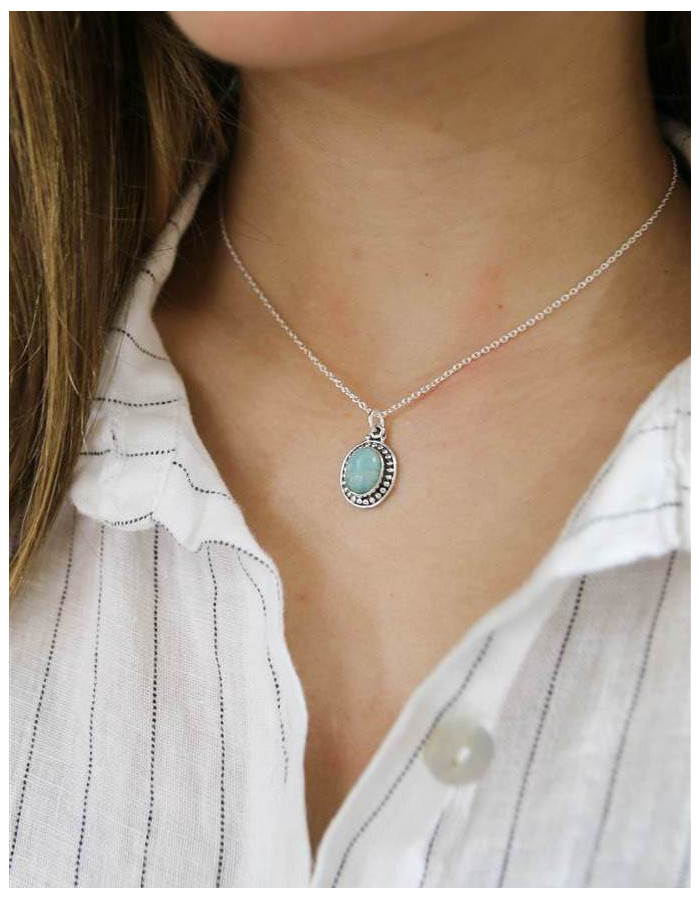 PLATA DE LEYEl colgante Reina de amazonita está formado por una cadena fina de plata y una piedra natural de amazonita como protagonista.