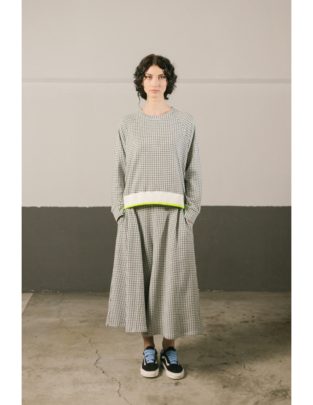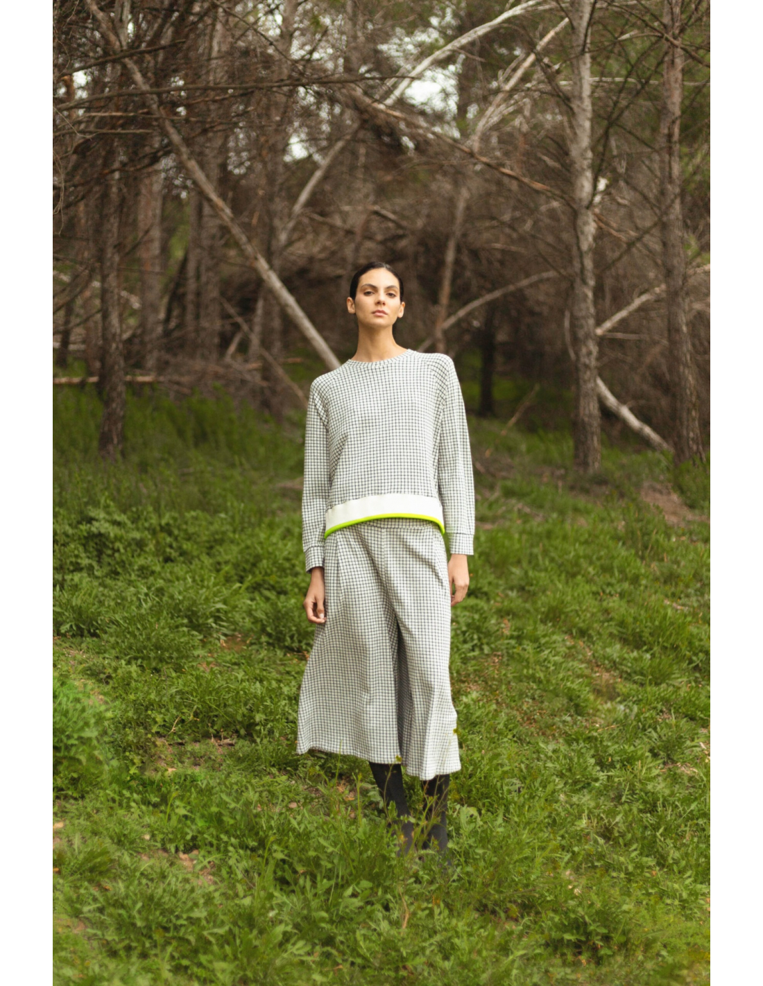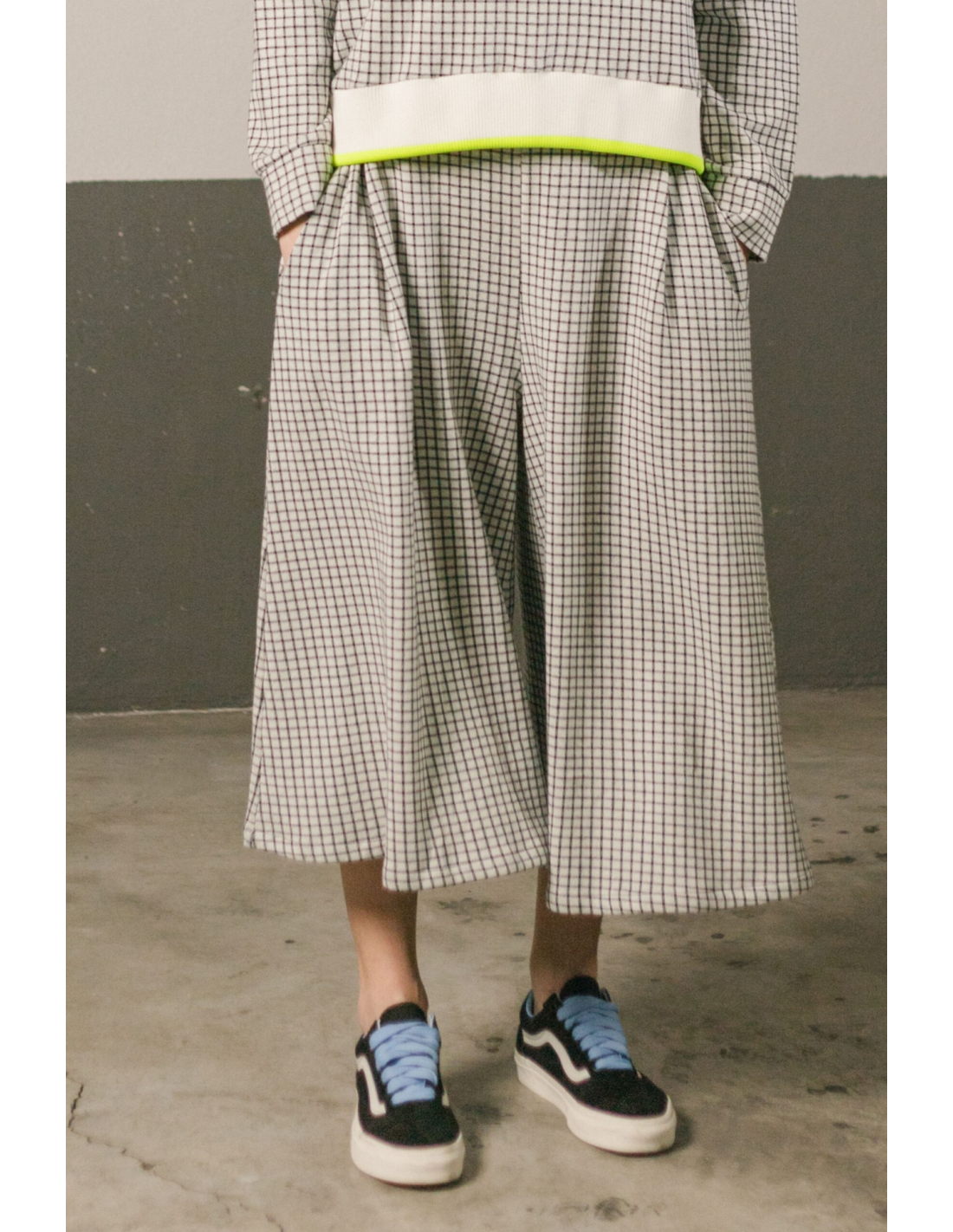 Falda pantalón de largo midi con bolsillos y cintura elástica.