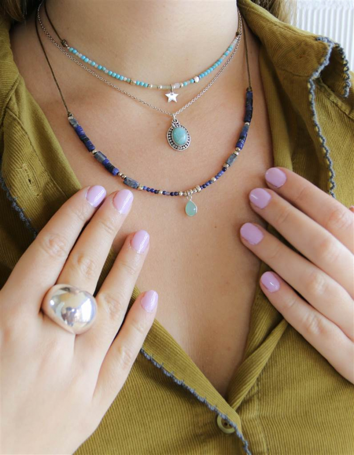 El lapislázuli con su intenso color azul profundo, aporta el equilibrio de las emociones y es piedra protectora.