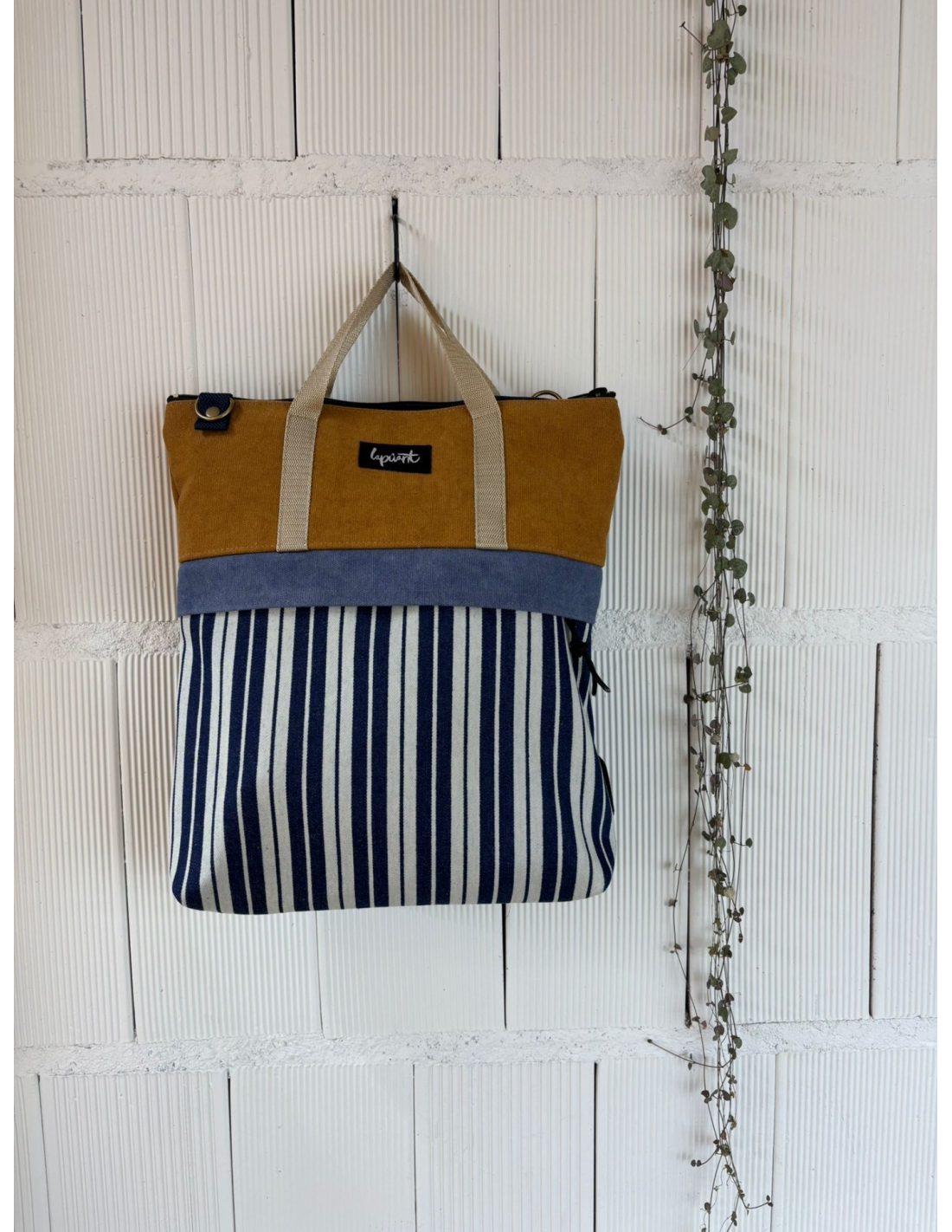 Hecha artesanalmente en canvas reciclado.