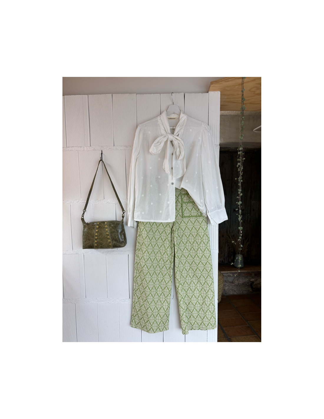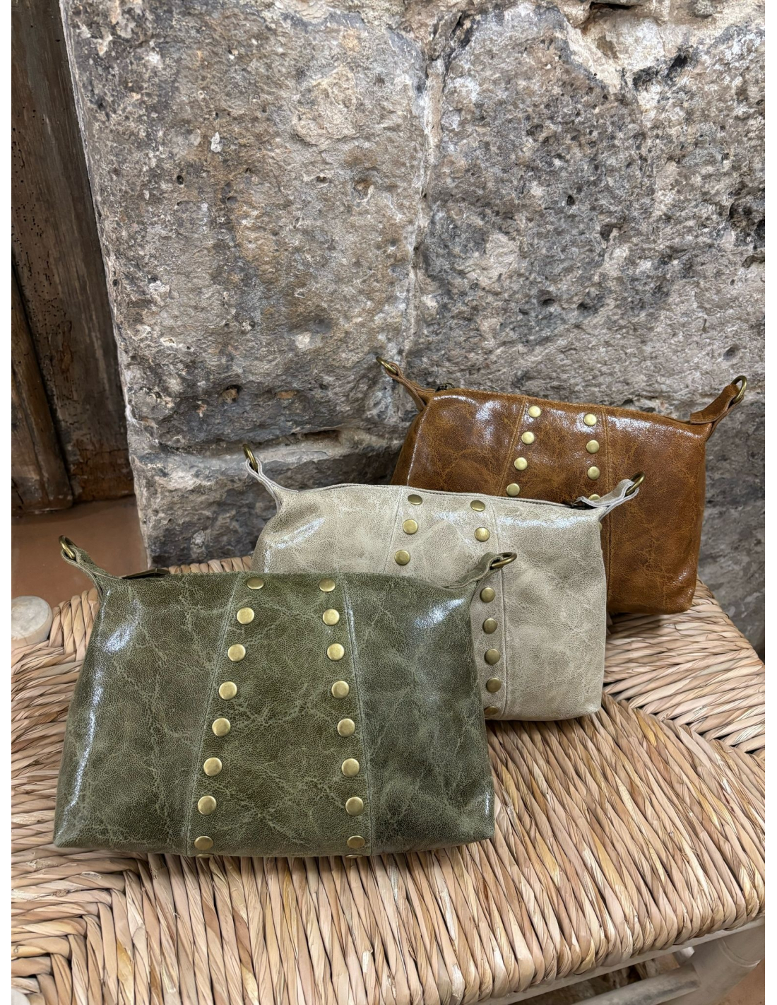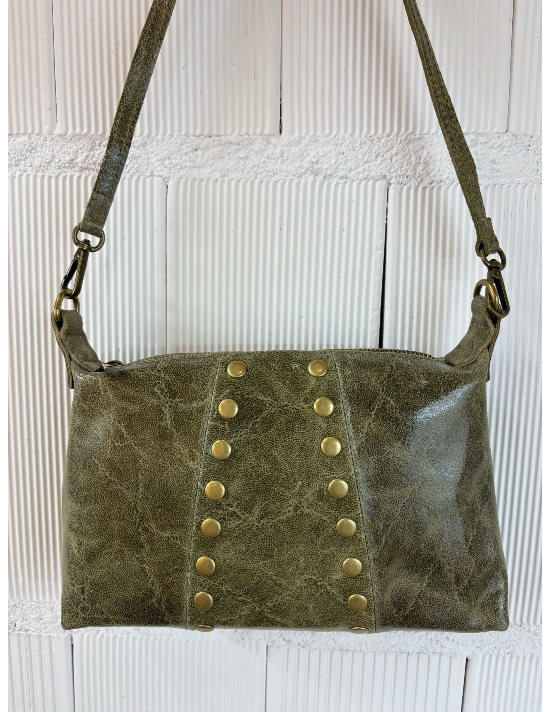Bolso de piel con detalle de tachuelas en medio. 💚