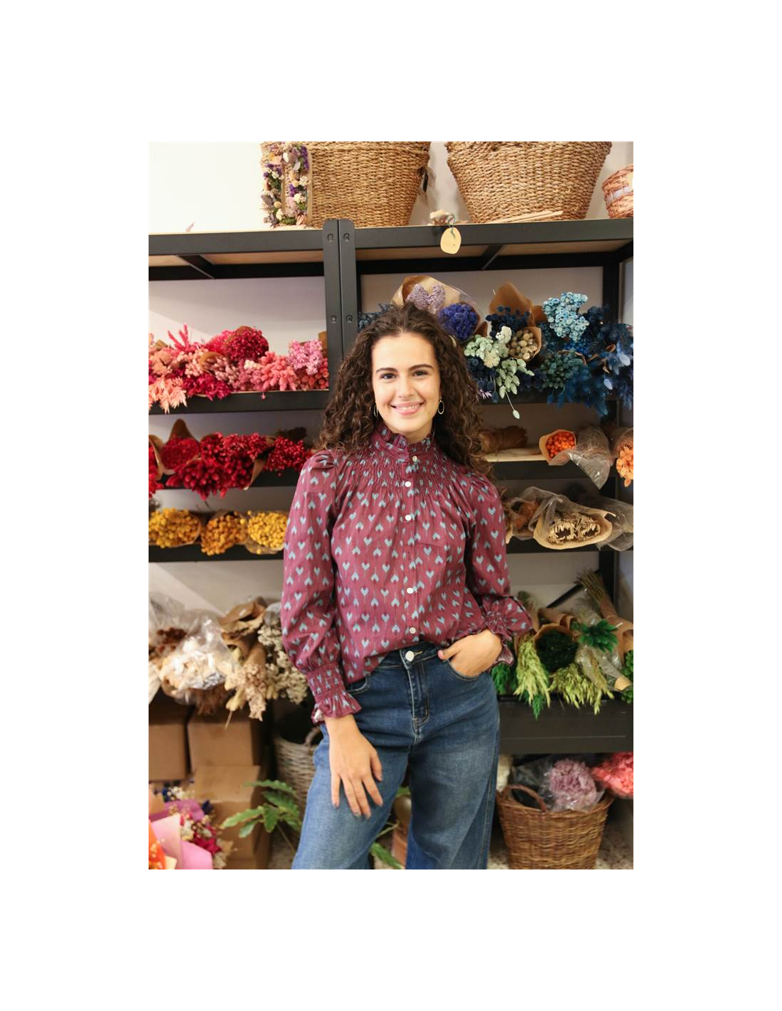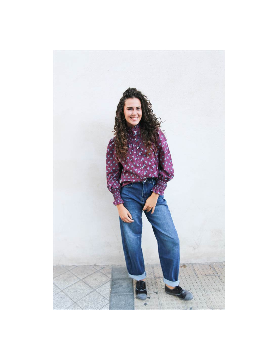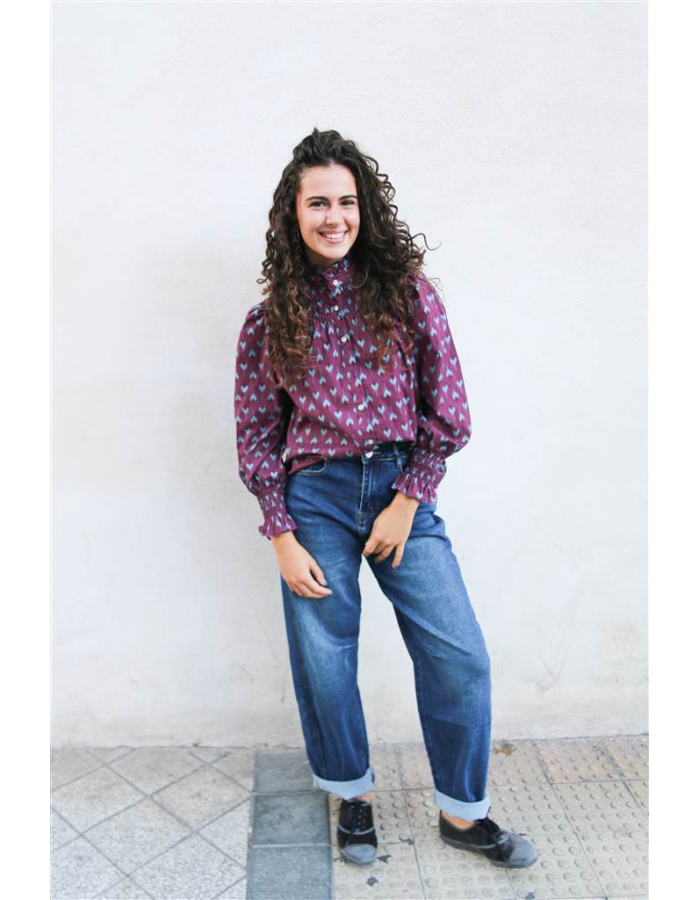 Camisa con nido de abeja en la zona del cuello. Cierre de botones.