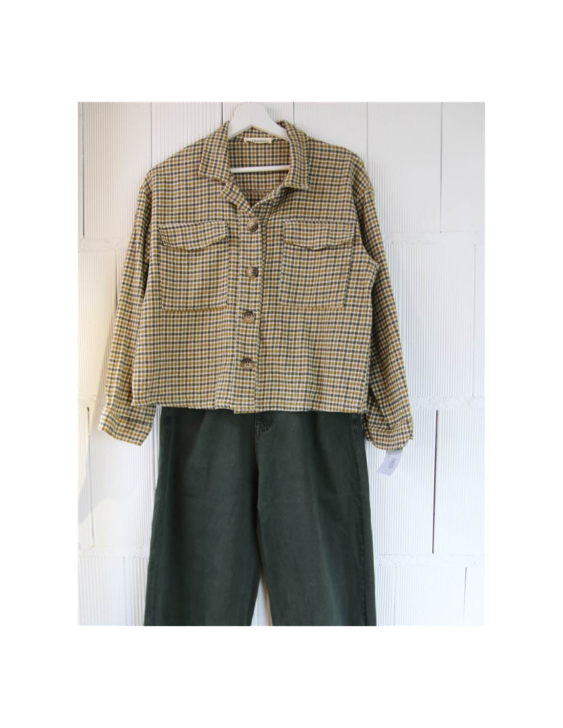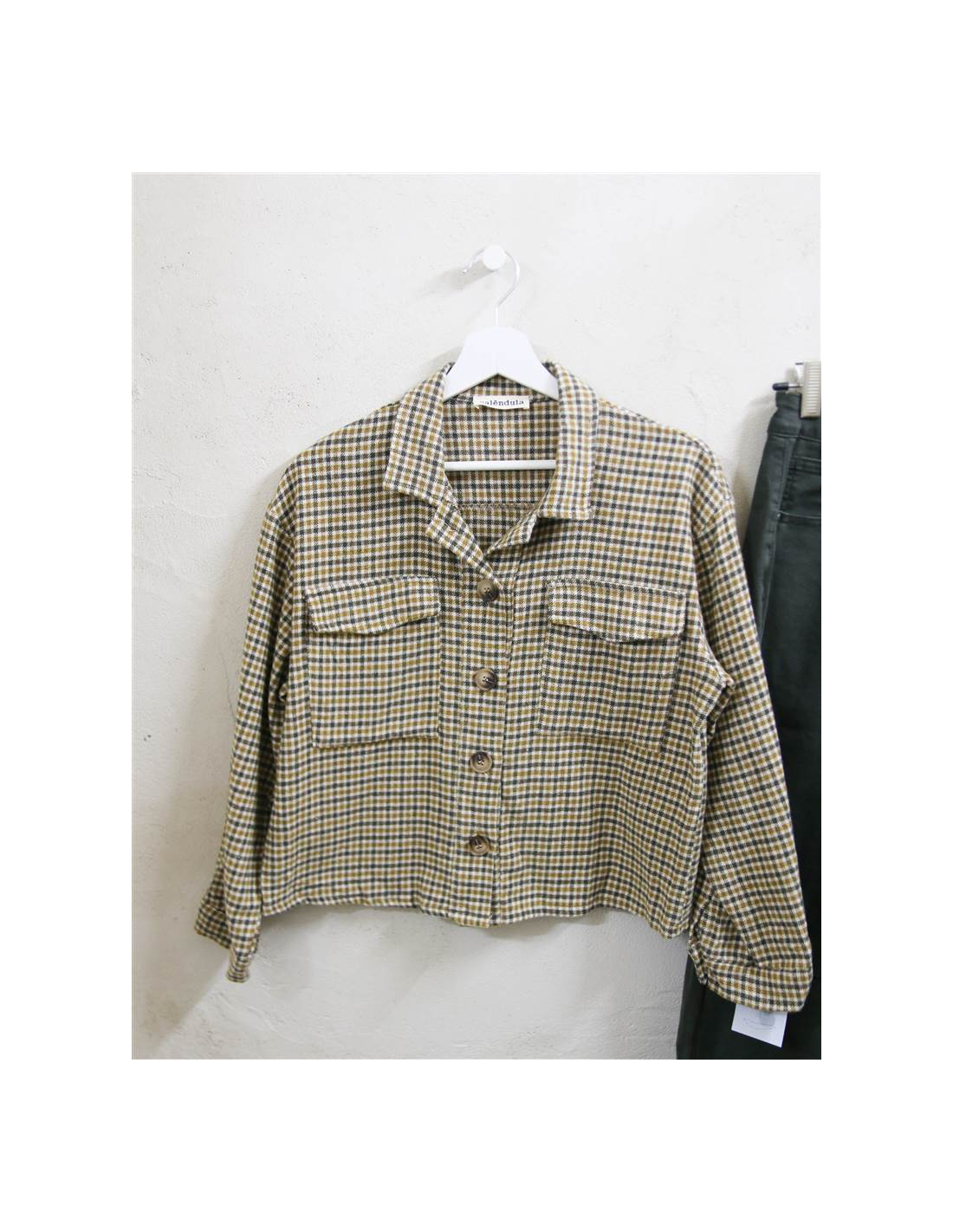 Camisa de cuadritos , botones, cuello camisero.