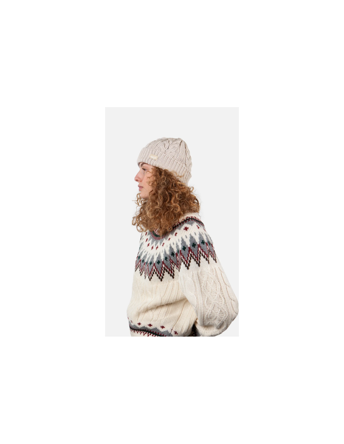 El artículo que se ven de es el gorrito rojo, la modelo lleva el mismo modelo en beige