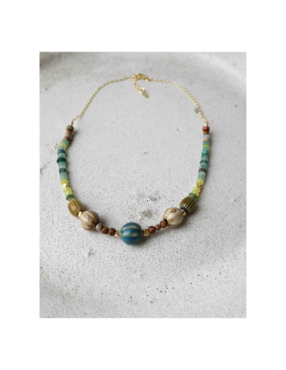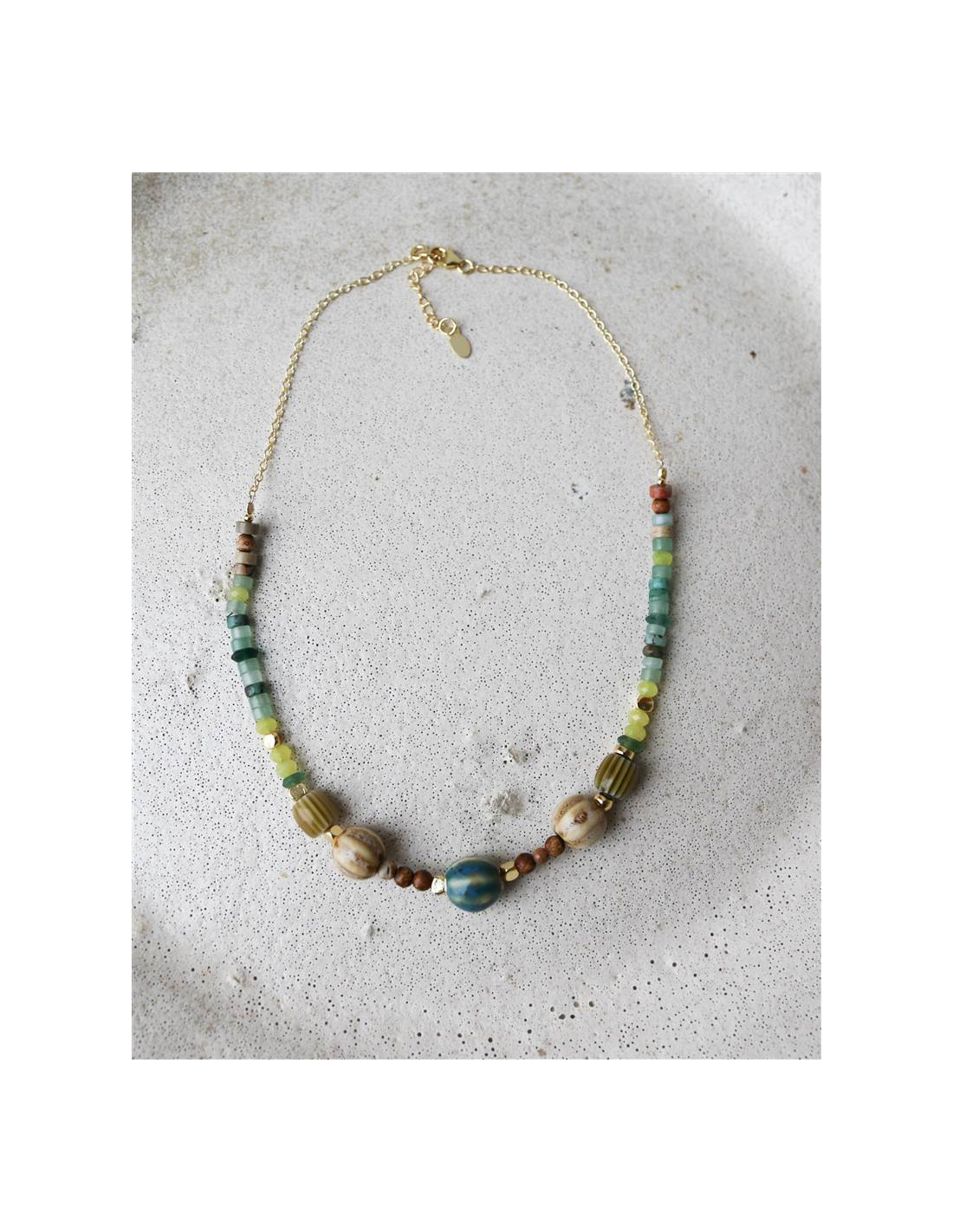 COLGANTE AVENTURINA Y CERÁMICA ORO