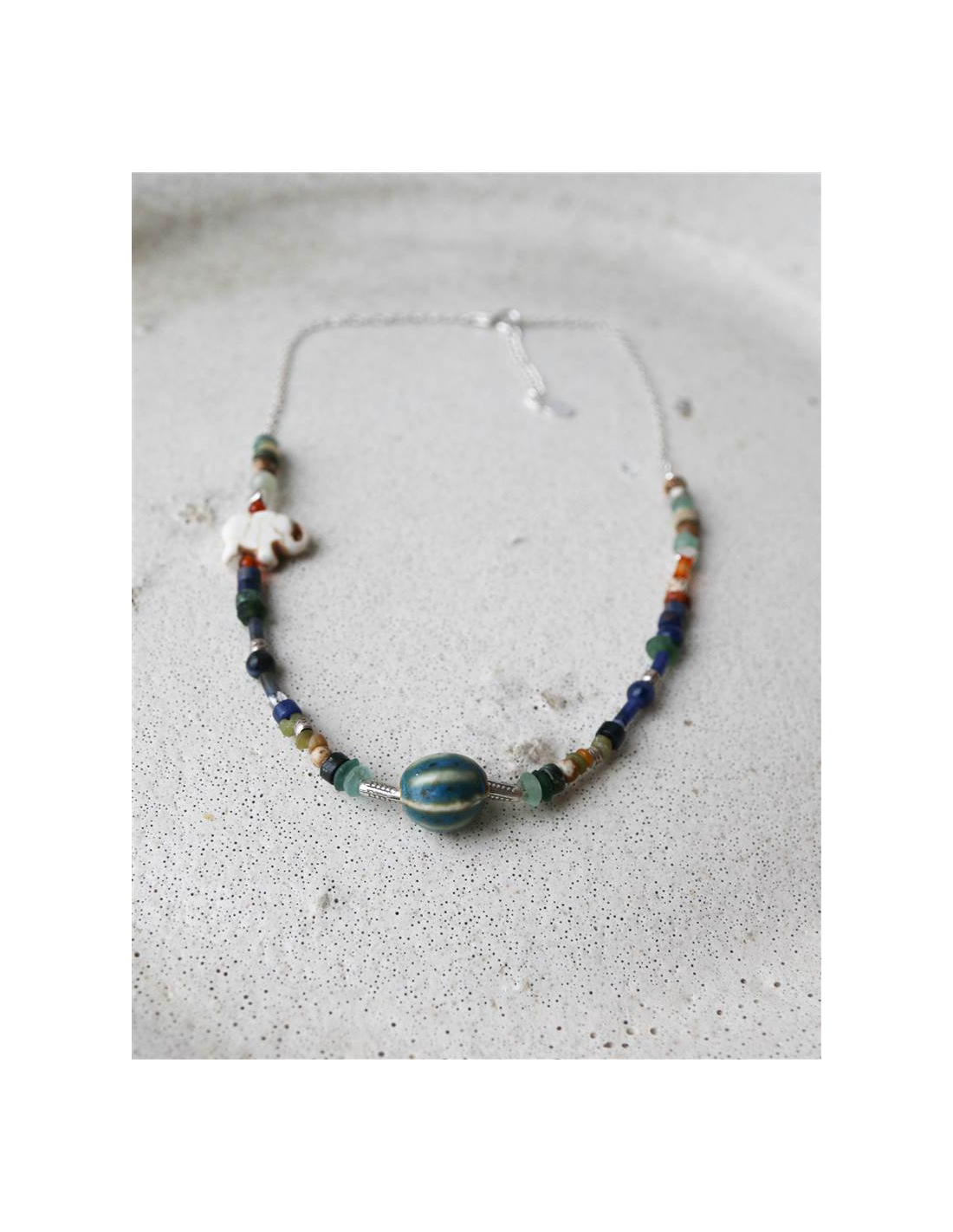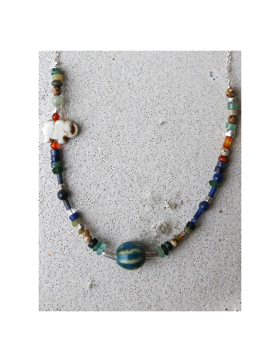 Piedras lapislázuli, cerámica y un elefantito de la suerte en hueso