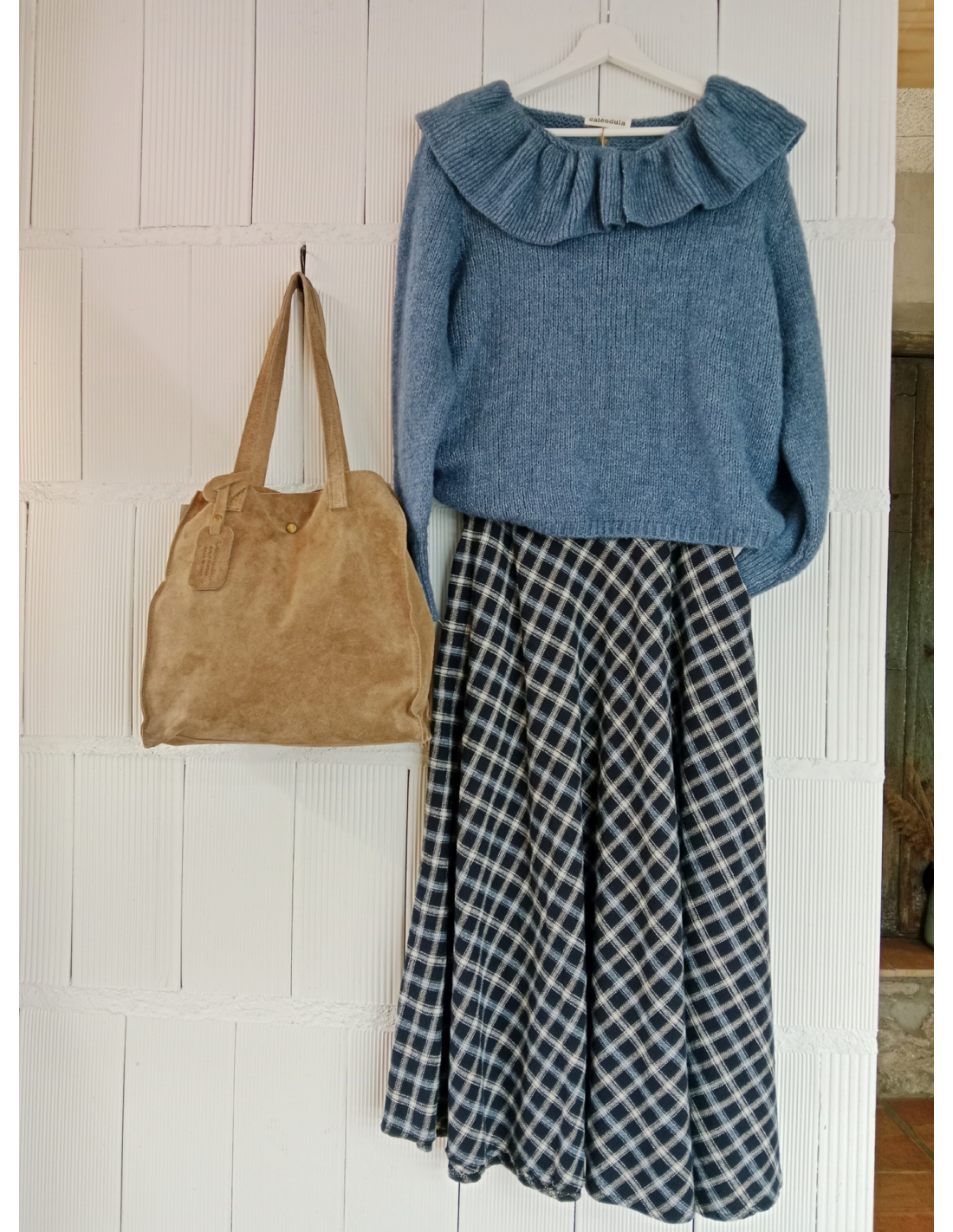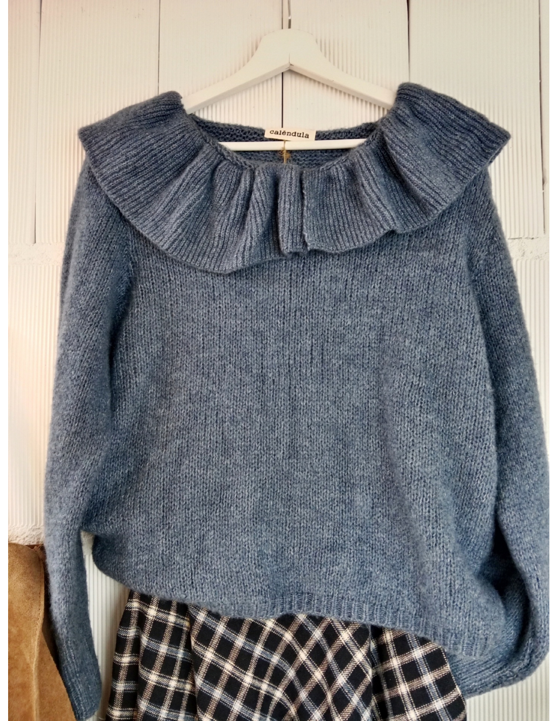 Jersey liso cuello redondo con volante.