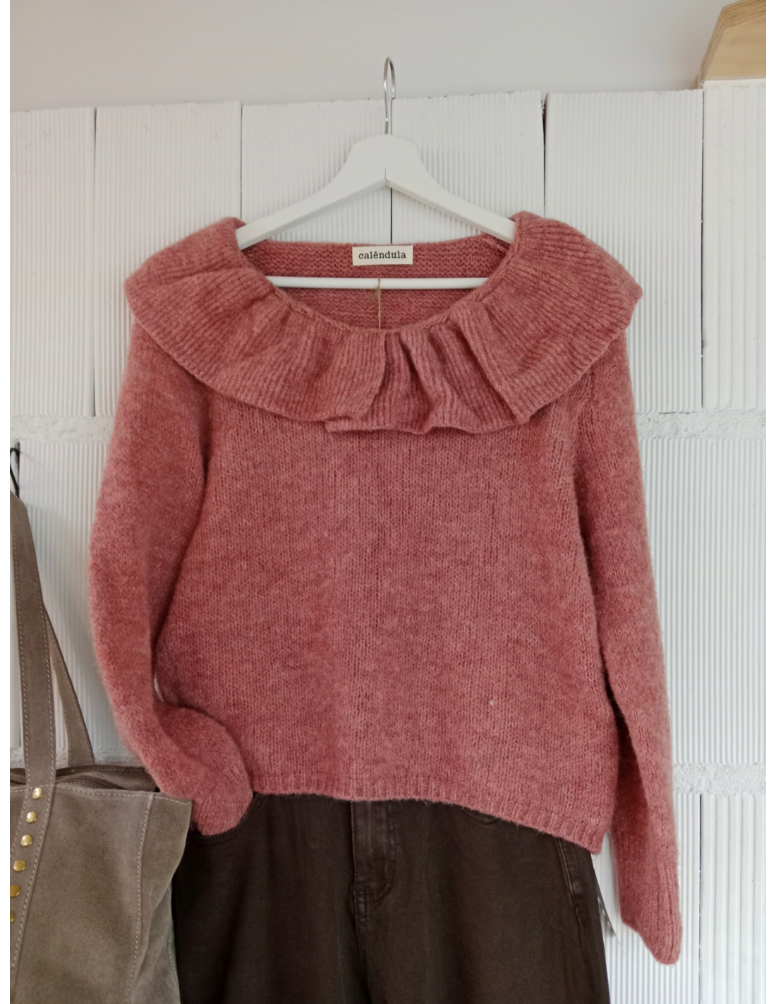 Jersey liso cuello redondo con volante.