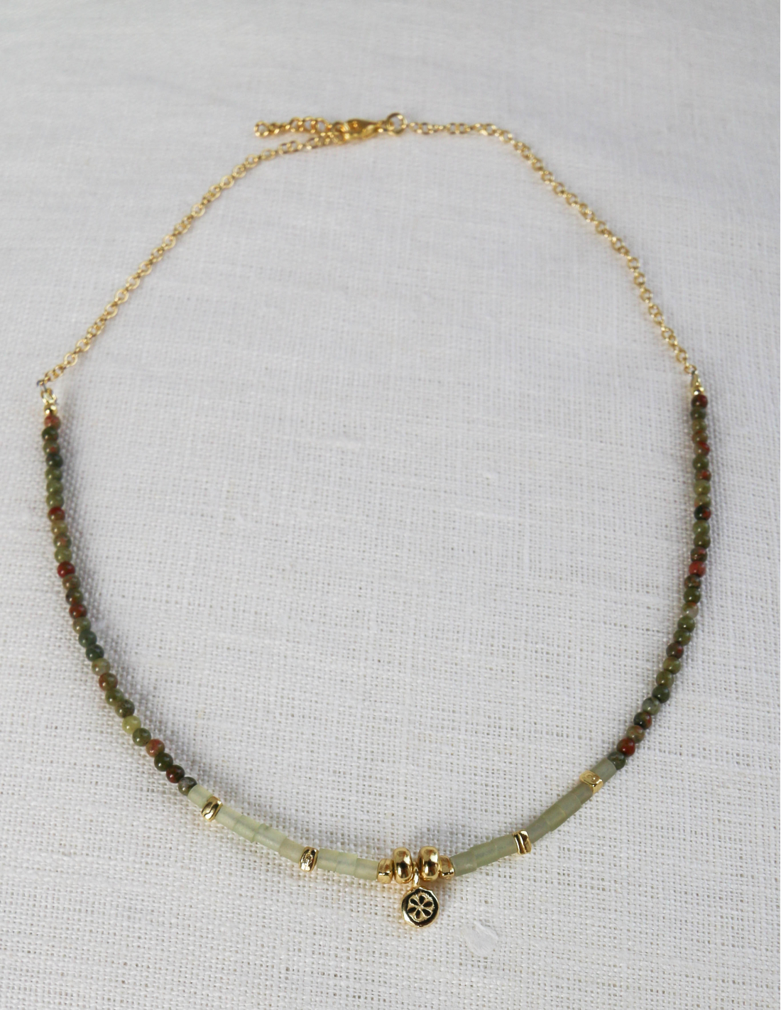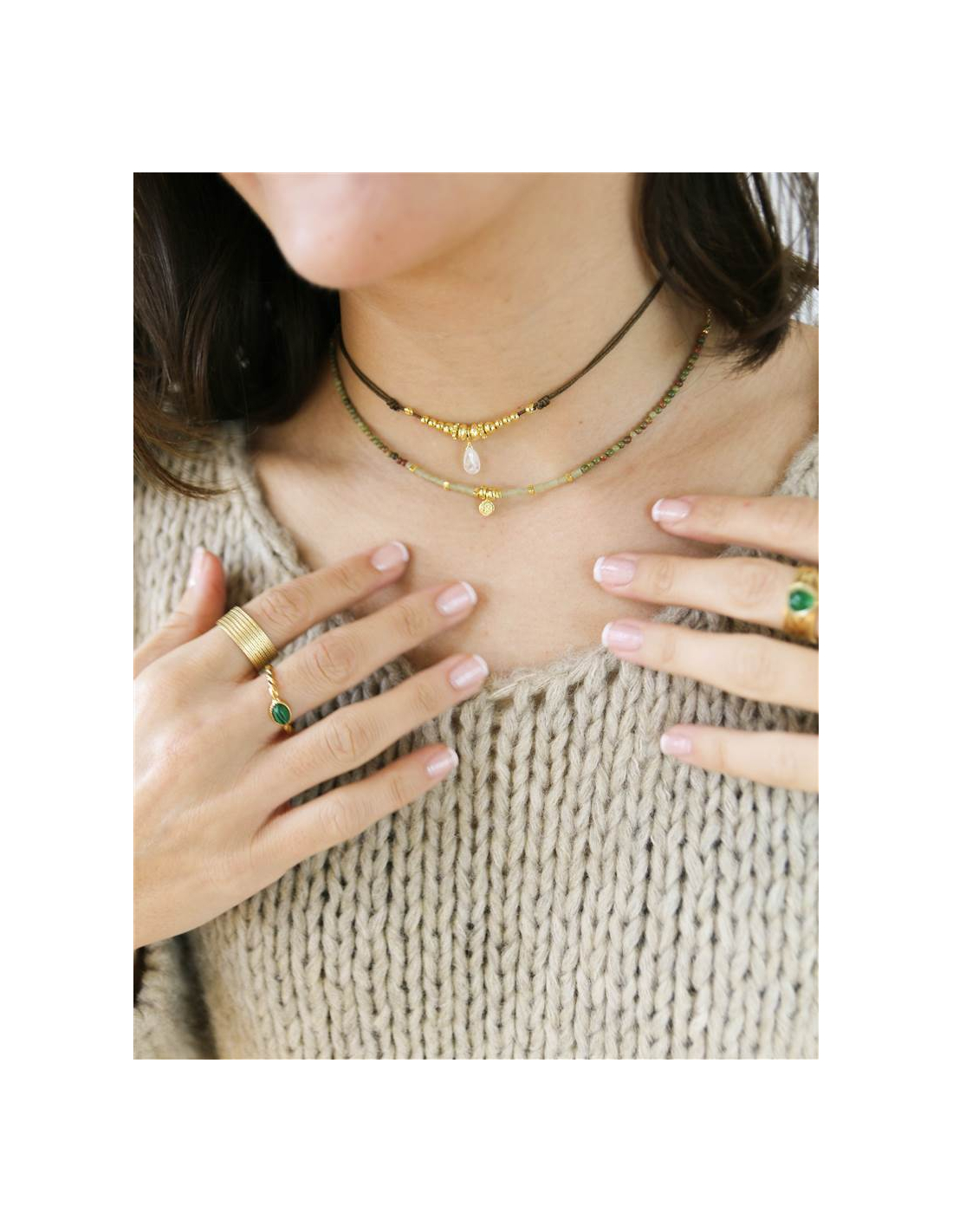 Colgante formado por pequeñas bolitas de piedra de jade y bolitas de oro.