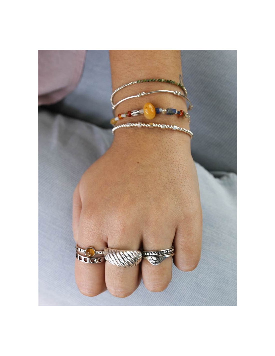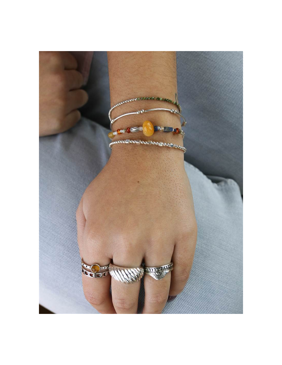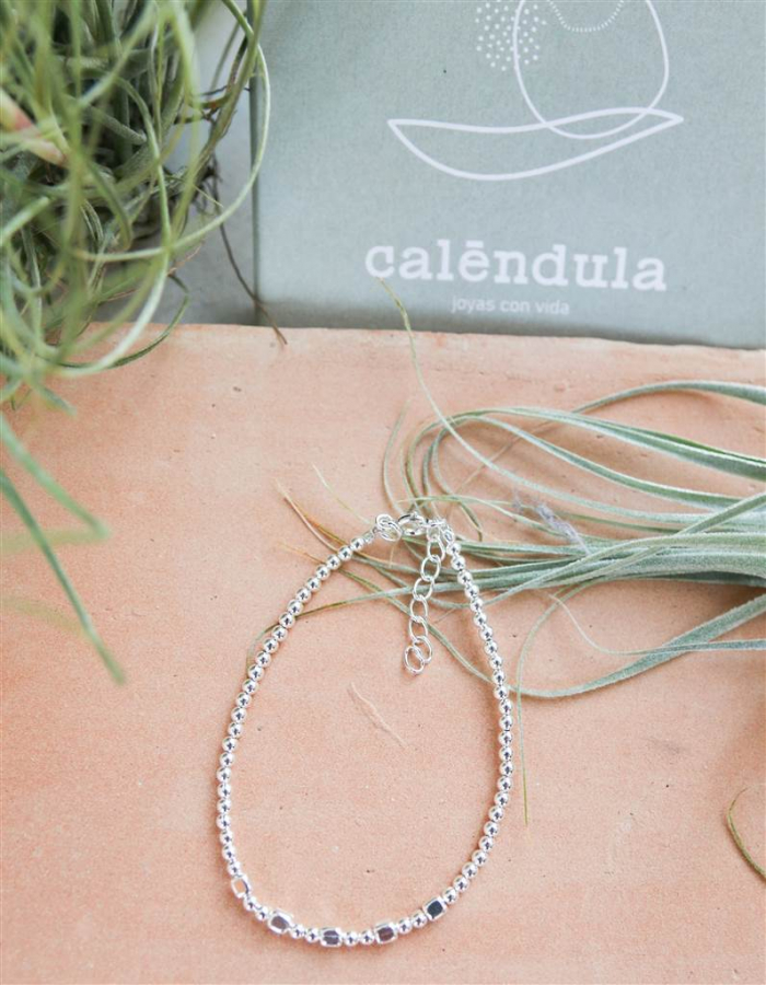 PLATA DE LEYPulsera de bolitas de plata con cinco cuadrados intercalados en la parte central para dar un toque