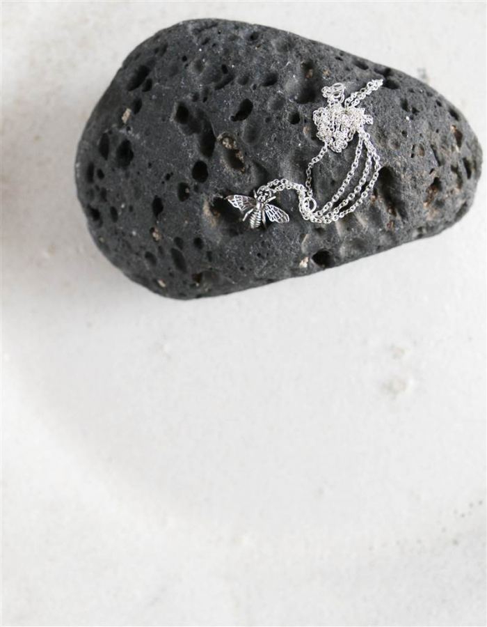La cadena que lleva es de 38cm y se puede regular 7cm más. Puede llevarse cortita o larga!