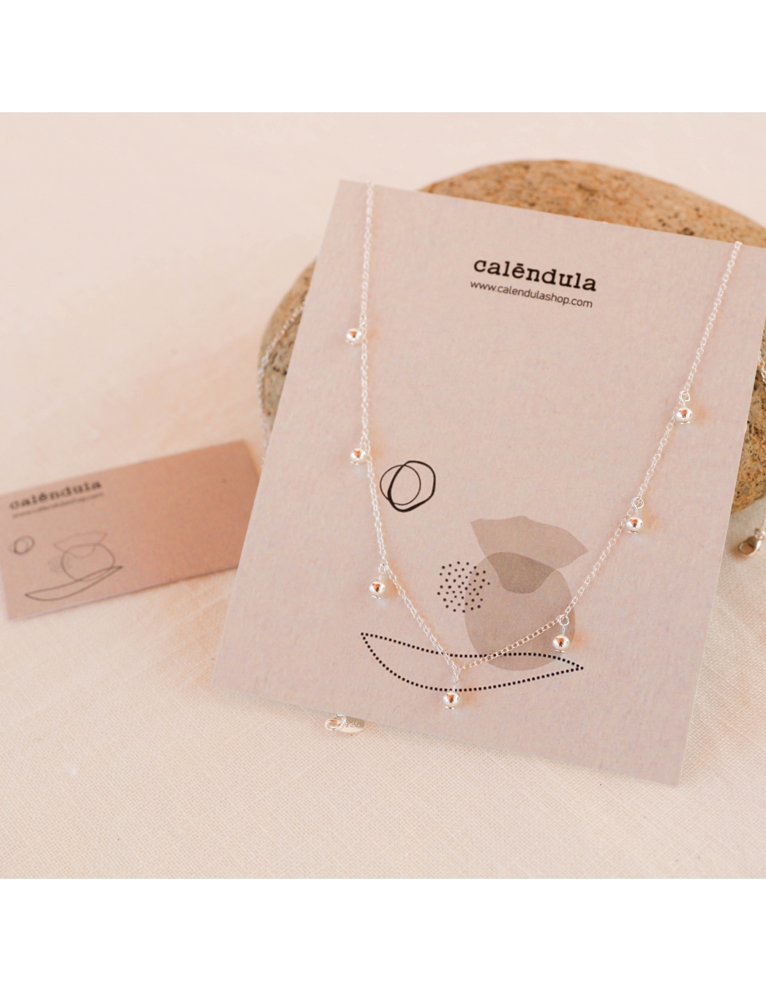 Cadena de eslabones básica con 7 pequeñas bolitas de plata de 3mm de diámetro (mini).