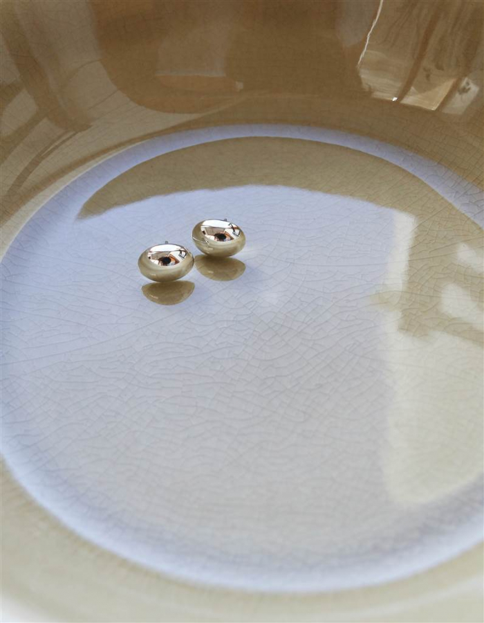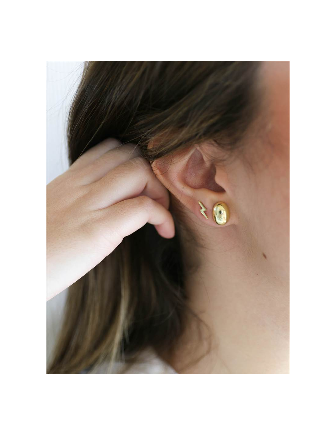 Foto con modelo en bola con baño de oro, pero este pendiente es de plata