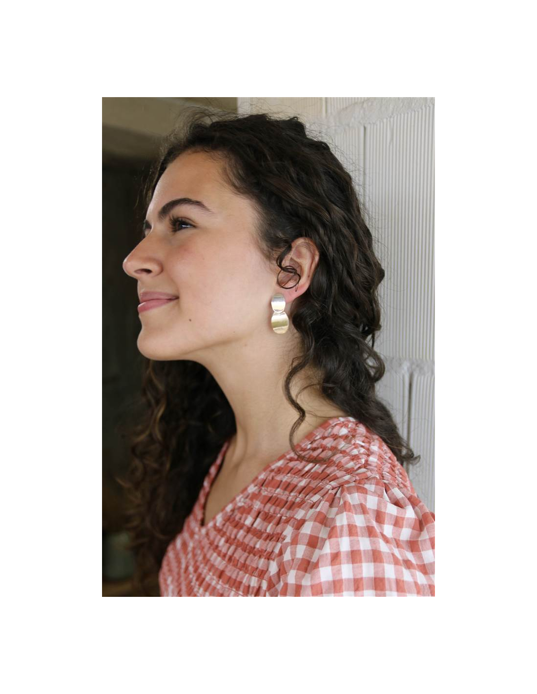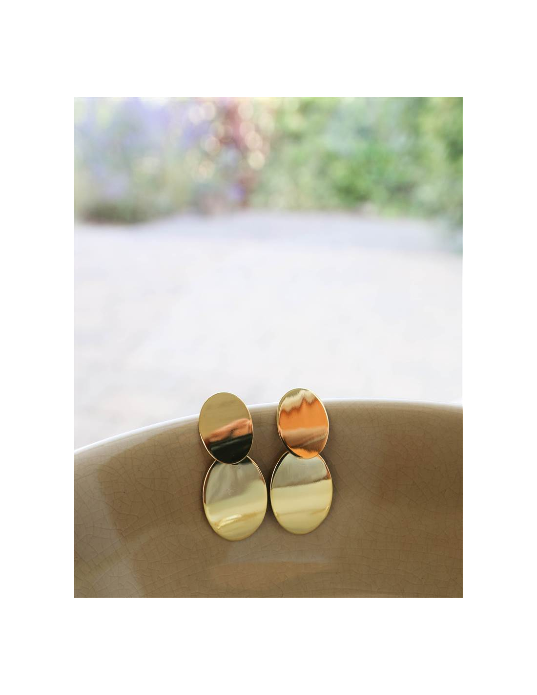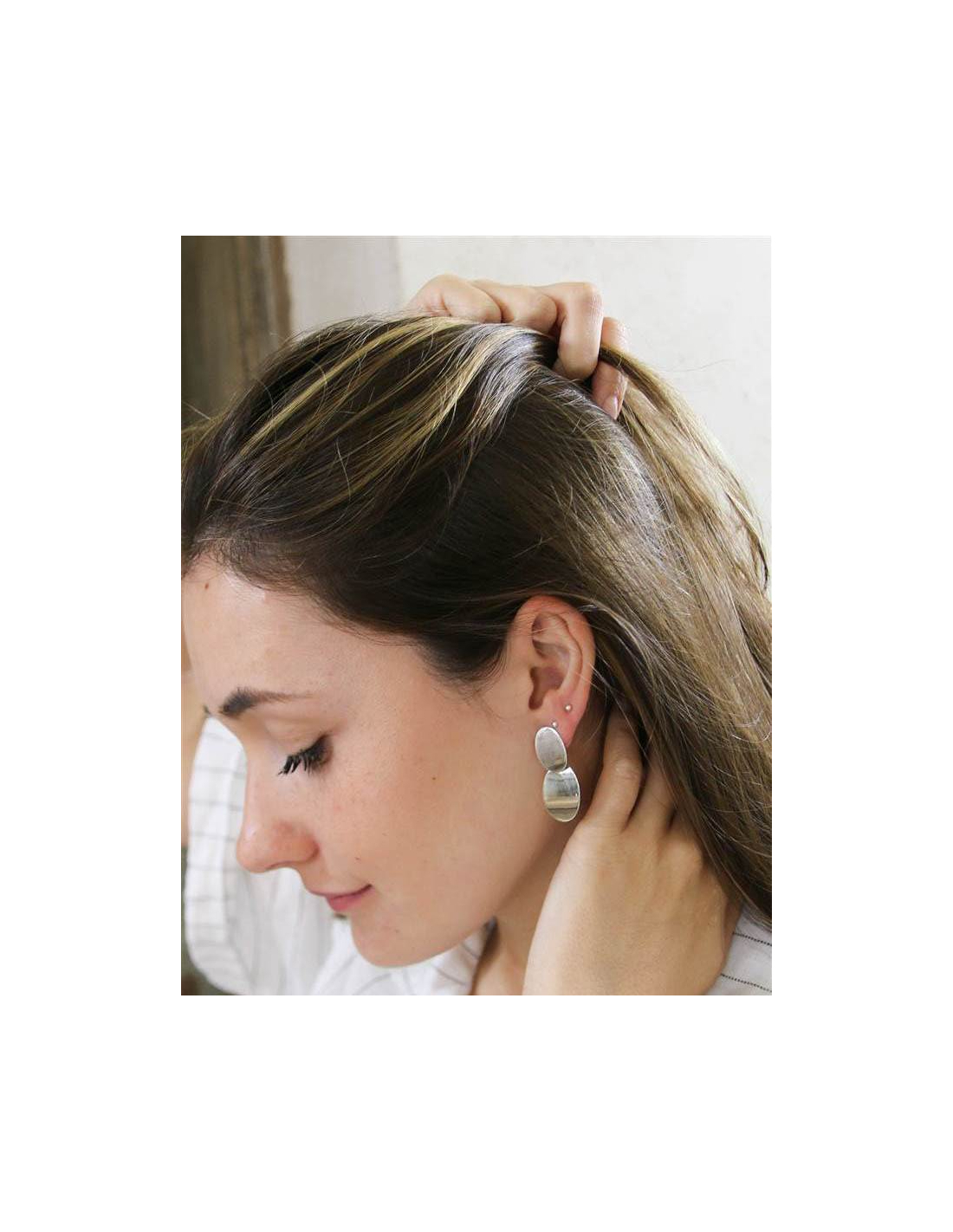 El diseño de este pendiente es súper especial. Dos chapitas curvas enganchadas para formar un pendiente grande con el que completar tus looks más sofisticados.